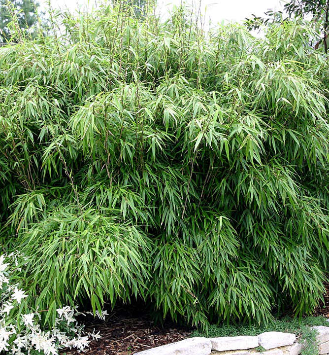 Rýchlo rastúci bambus, ktorý dorastá do výšky 2,5 - 3 m. Vytvára krásny hustý kompaktný dáždnik. Nie je invázivný a nevyžaduje koreňovú bariéru, nerozširuje sa podzemnými výhonkami. Tvorí husté trsy, mladé steblá sú zelené, neskôr nadobúdajú žltý odtieň. Rastú vzpriamene, v hornej časti sa kaskádovite skláňajú do strán. Je mrazuvzdorný do -27°C.