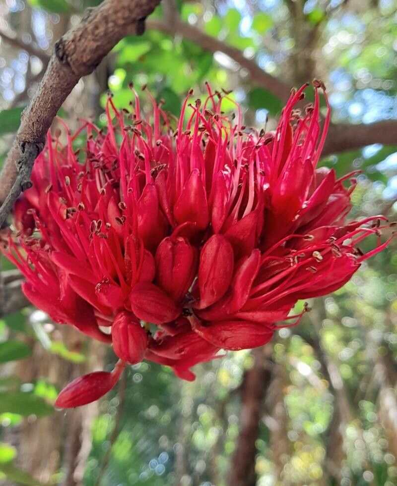 Malý až stredne veľký, okrasný strom s rozšírenou, zaoblenou korunou. Mladé listy sú ružové, neskôr zelené. Množstvo tmavočervených kvetov v zhluku rastie na staršom dreve. Kvety produkujú veľa sladkého nektáru, ktorý priťahuje papagáje. Nektár kvasí na slnku a môže produkovať alkohol, a preto sa nazýva "opitý papagájový strom" alebo tiež "strom Fuchsia". Je pôvodom z lesov v Južnej Afrike a Zimbabwe.